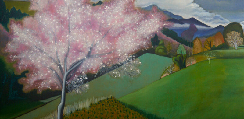 Cuando Alfonso Fernández dice que los cuadros de Juan Antón han de ser explorados detenidamente en su superficie. Invitan a acercarse, a indagar cada palmo del lienzo y detenerse en sus accidentes. Es una pintura que demanda una mirada quieta y atenta, casi una escucha sinestésica de resonancias cromáticas, recuerda a las críticas que hace cien años afirmaban que la contemplación de los cuadros de Evaristo Valle no terminaba nunca, pues a cada visión traían algo nuevo. Juan Antón hace coexistir los vapores del cielo con los polígonos en los que sintetiza los prados, las áreas fosforescentes frente al crudo del lino, las amplias extensiones planas donde descansa la mirada frente al enjambre de pinceladas mínimas de las hojas de los árboles. Todo en los paisajes de Juan es una reflexión profunda sobre el ejercicio de pintar. Tampoco su preferencia por el gran formato es arbitraria: busca dar dimensión al espectador, enfrentarlo a una visión panorámica que, más que contemplarse desde un mirador, parece diseñada para ser sobrevolada. Así, su pintura se convierte en un territorio en sí mismo: uno que no representa el paisaje, sino que lo transforma en verdadera experiencia pictórica, ejemplo de la mejor pintura que se hace en Asturias.
